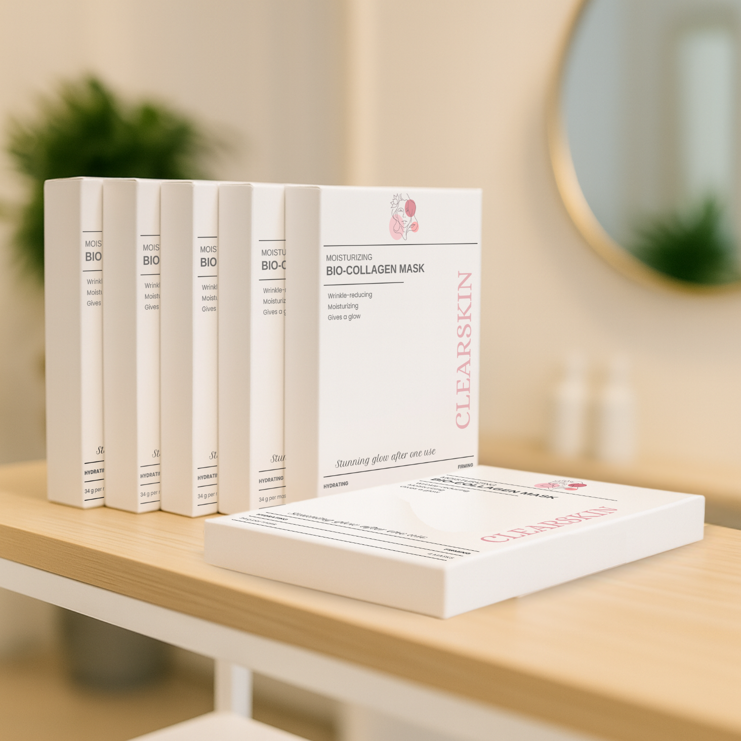 Clearskins kollagenmask är utvecklad för att tillföra lågmolekylärt kollagen som huden kan absorbera och använda för att stimulera sin egen kollagenproduktion.